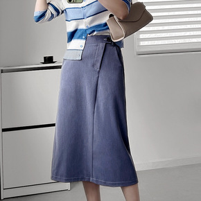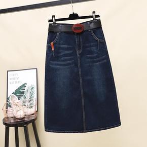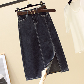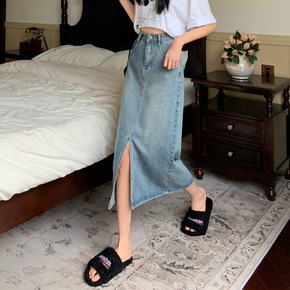牛仔裙半身裙女中长款裙子2022新款春夏开叉高腰a...