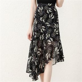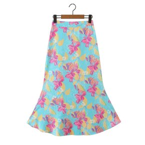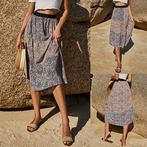 2022 3070夏季欧美风高腰花朵印花中长款半身...