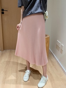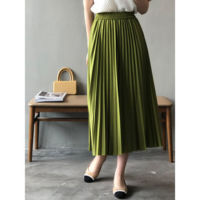 言双 百褶半身裙女2022夏季新款韩版高腰垂感过膝...