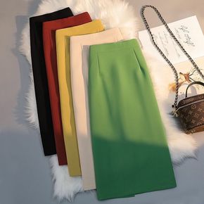 火龙果色西装半身裙女春夏遮胯显瘦开叉一步裙绑带式a...