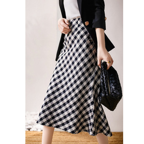 格子半身裙女2022春夏新款高腰显瘦a字气质高级感...