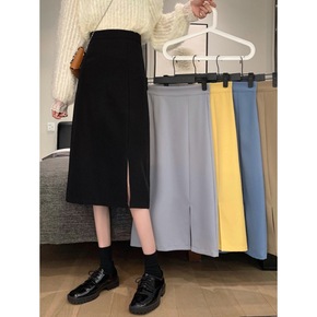 2022秋冬新款小香风中长款开叉a字女半身裙钉珠气...