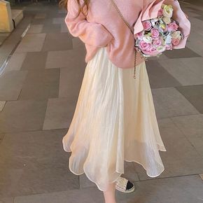 春夏小个子小众半身裙设计感批发女松紧腰中长款百搭A...
