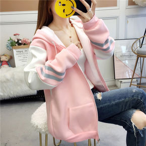 2021秋季新款长袖卫衣女 加绒加厚连帽拉链运动衫...