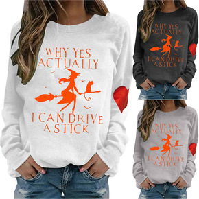 跨境货源欧美简约套头圆领上衣长袖亚马逊wish万圣...