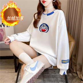 2021日系秋冬新款卡通动漫哆啦A梦加绒加厚学生T...