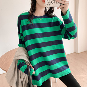 2022春季新款条纹长袖T恤卫衣女薄款大码时尚休闲...