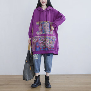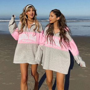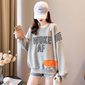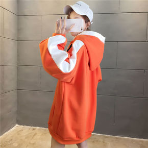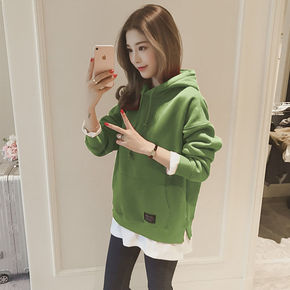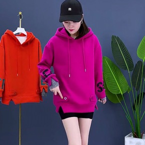 秋冬季薄款宽松显瘦中长款上衣新款韩版字母长袖连帽卫...