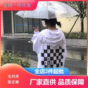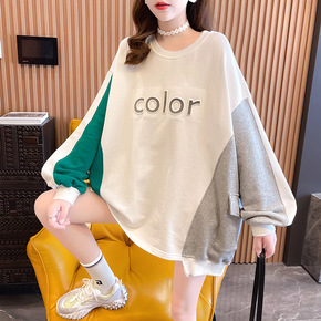 2022春新款大码宽松连帽中长款卫衣大字母水洗套头...