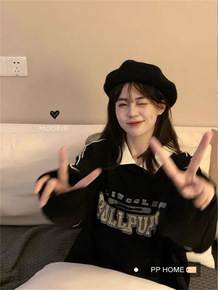 韩系polo领长袖薄款卫衣外套女设计感小众早秋20...