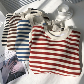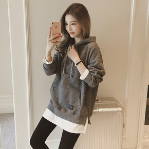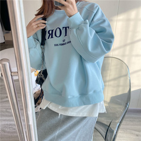 现货2022秋装新款韩版宽松中长款加绒加厚假两件学...