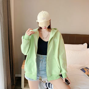 加绒加厚卫衣女大码胖mm宽松韩版加绒加厚拉链口袋2...