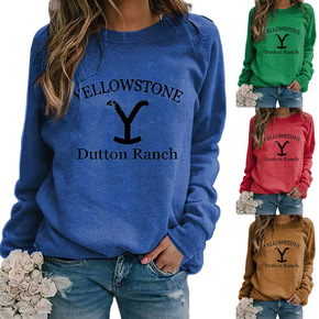 亚马逊独立站欧美热卖秋冬圆领长袖时尚印花卫衣T恤女...