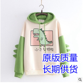 2019 亚马逊印花恐龙撞色 校园风 卫衣女冬季韩...