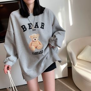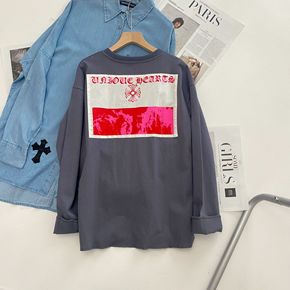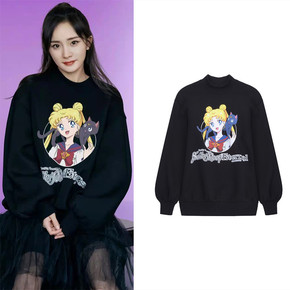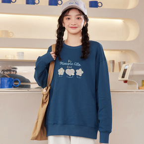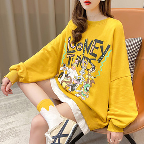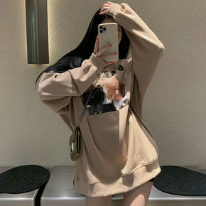 2022初春新款搞笑小女孩印花慵懒风卫衣学生圆领中...