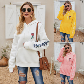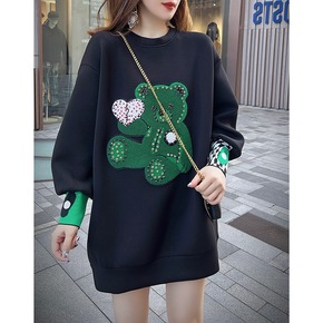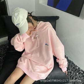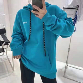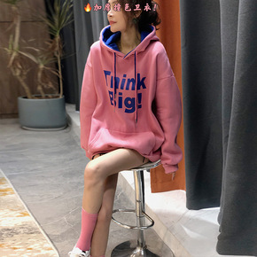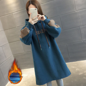 一件代发2021秋冬装中长款宽松连帽加绒套头卫衣女...
