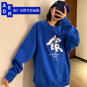 高级设计感蓝色卫衣女春秋2022新款圆领上衣字母刺...