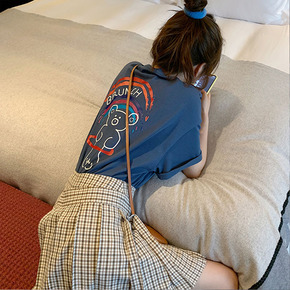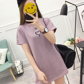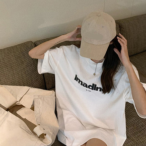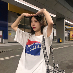 2021夏季新款字母绣花百搭学生上衣中长款宽松加大...