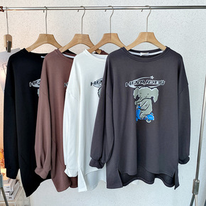 [欧玛莱]韩风秋装新品女圆领卡通小象印花长袖宽松中...