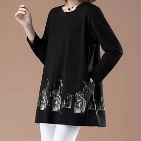 加大码女装长袖上衣女新款韩版春秋宽松中长款胖MM打...