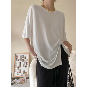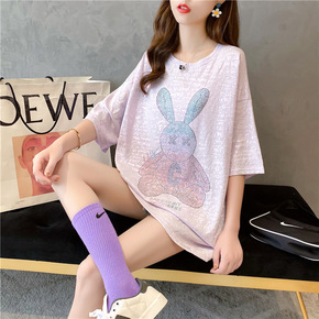 2021夏季女装上衣韩版宽松大码中长款t恤白色短袖...