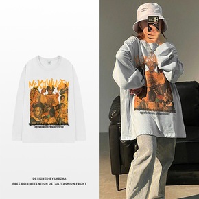美式街头风卫衣新款女字母套头圆领长袖中长款上衣宽松...