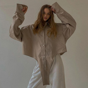 实拍2021秋季新款休闲宽松印花中长款慵懒风上衣韩...