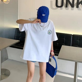 简约小熊刺绣短袖T恤女2022年春夏季新款大码宽松...