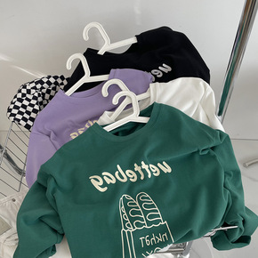 2022新款学院风印花长袖T恤女装秋冬一件代发显瘦...