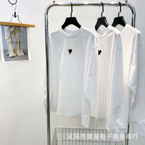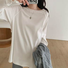 300g白色 欧美爆款纯棉圆领套头长袖t恤女打底衫...