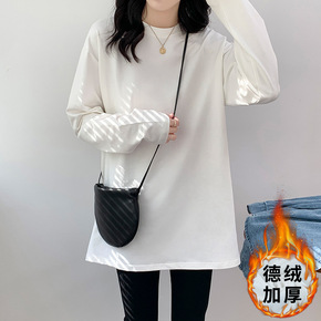 胖MM大码200斤白色长袖t恤女秋冬季学生韩版宽松...