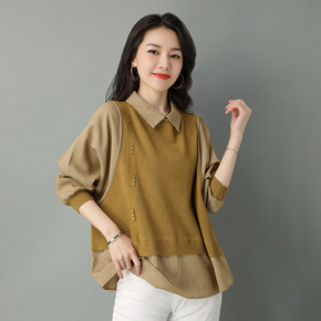 2022秋冬新款欧美女士针织衫亚马逊爆款中长款双口...