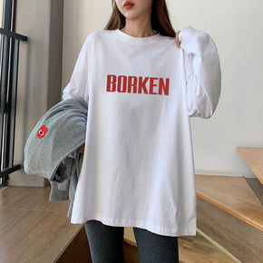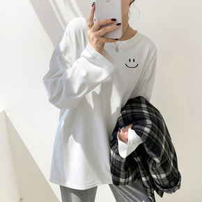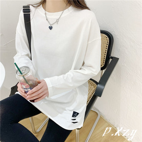 2021春季新款韩版女装宽松圆领长袖T恤女上衣百搭...