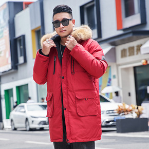 羽绒服男中长款大毛领加厚加大修身时尚青年青少年宽松...