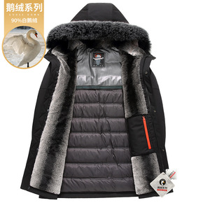 高端鹅绒系列羽绒服男士极寒保暖90白鹅绒中长款连帽...