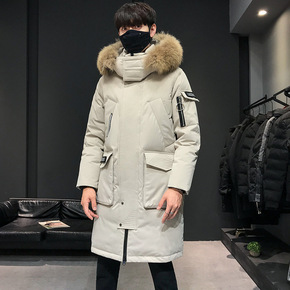 中长款羽绒服男2021新款男士狐狸毛领加厚高端灰鸭...