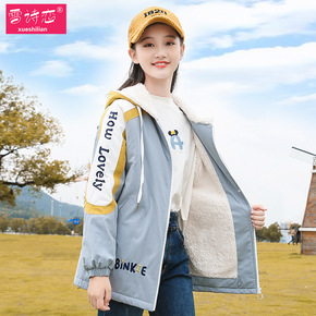 初中生少女冬装新品绣花撞色拉链带帽高中生加厚棉衣工...