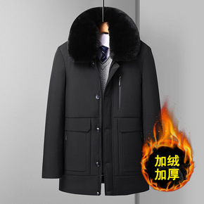 秋冬外单鹅保暖休闲男中年棉衣加厚中长款毛领棉服外套...