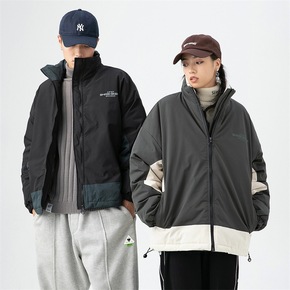 男士棉衣2020青年立领休闲秋冬季拼色加绒加厚短款...