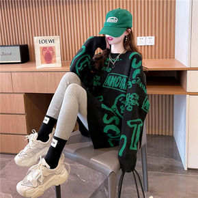 韩版慵懒风宽松显瘦套头针织上衣时尚休闲百搭女装中长...