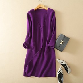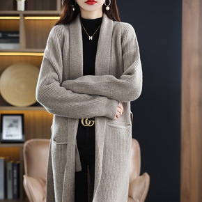 2022年秋冬羊毛针织开衫女领中长款羊绒毛衣外套宽...