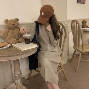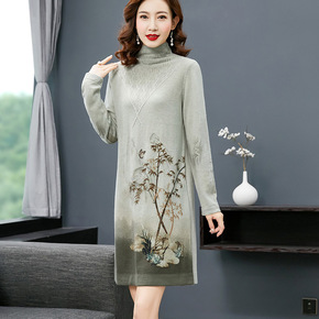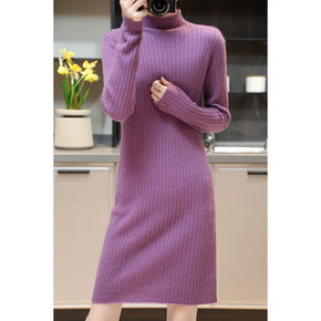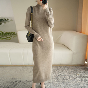 半高领纯羊毛裙针织连宽松型女修身显瘦毛宽松型中长款...