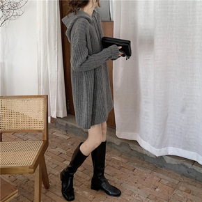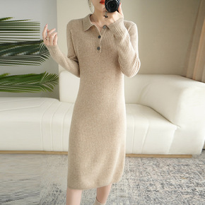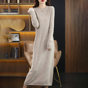 22秋冬新款半高领美丽诺纯羊毛针织连衣裙女中长款修...