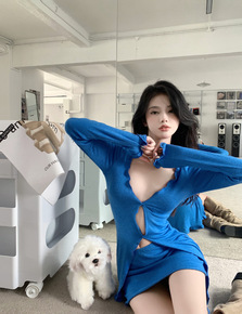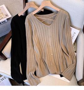 辣妹镂空长袖针织开衫女装秋季新款别致独特设计感修身...