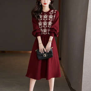 温柔风针织连衣裙女2022秋装新款长袖高腰显瘦中长...