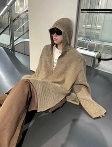 2022秋季ebay高领超大毛衣中长款蝙蝠袖下摆束...