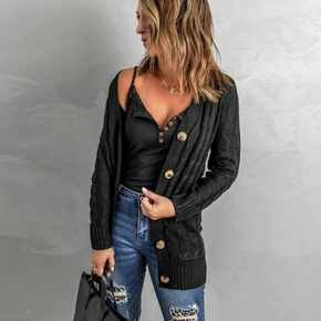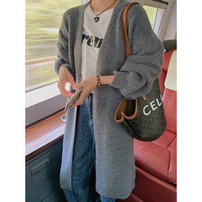 2020秋冬新款V领女式针织开衫 韩版宽松外搭中长...