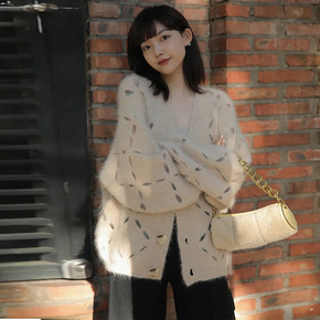 秋冬季2022年新款小香风针织开衫马海毛复古慵懒毛...