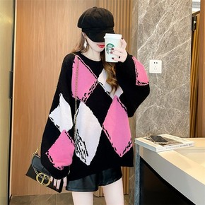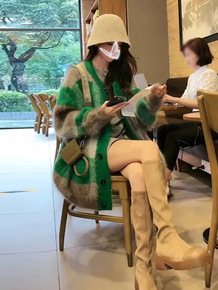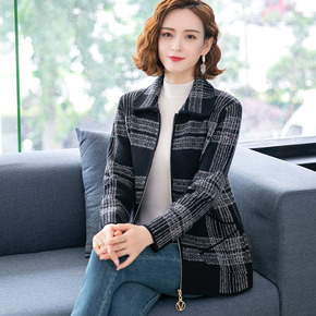 2021秋冬新款格子毛衣外套女时尚洋气复古仿水貂针...