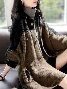 复古港味毛衣开衫女2022新款春秋洋气拼色宽松慵懒...